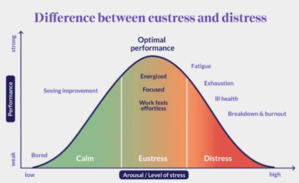 Stress in small doses can help performance, as short bursts of pressure trigger the release of adrenaline, which sharpens focus, speeds up thinking, and helps people power through tasks (See Eustress).