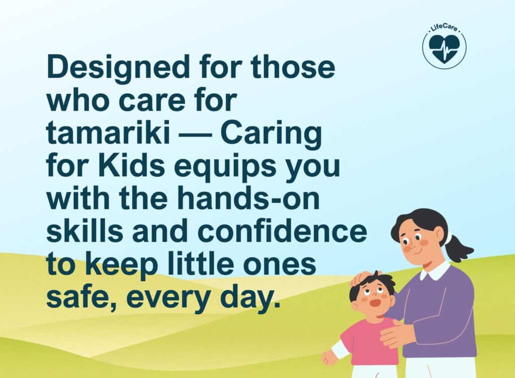 At LifeCare, we understand that caring for tamariki comes with great responsibility. Our new Caring for Kids First Aid course is designed specifically for those who look after infants and young children — whether you work in an early childhood centre, provide home-based care, or are a parent, grandparent, or caregiver wanting to feel more confident in emergencies.
